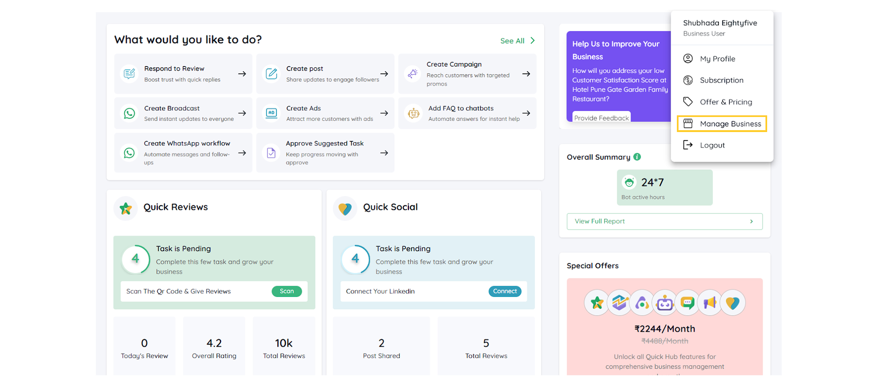 With Quick Hub, you can centralize and manage all your Google My Business profiles in one place. Easily update posts, showcase services, and respond to reviews—all from a single platform. To do so, follow the steps below: