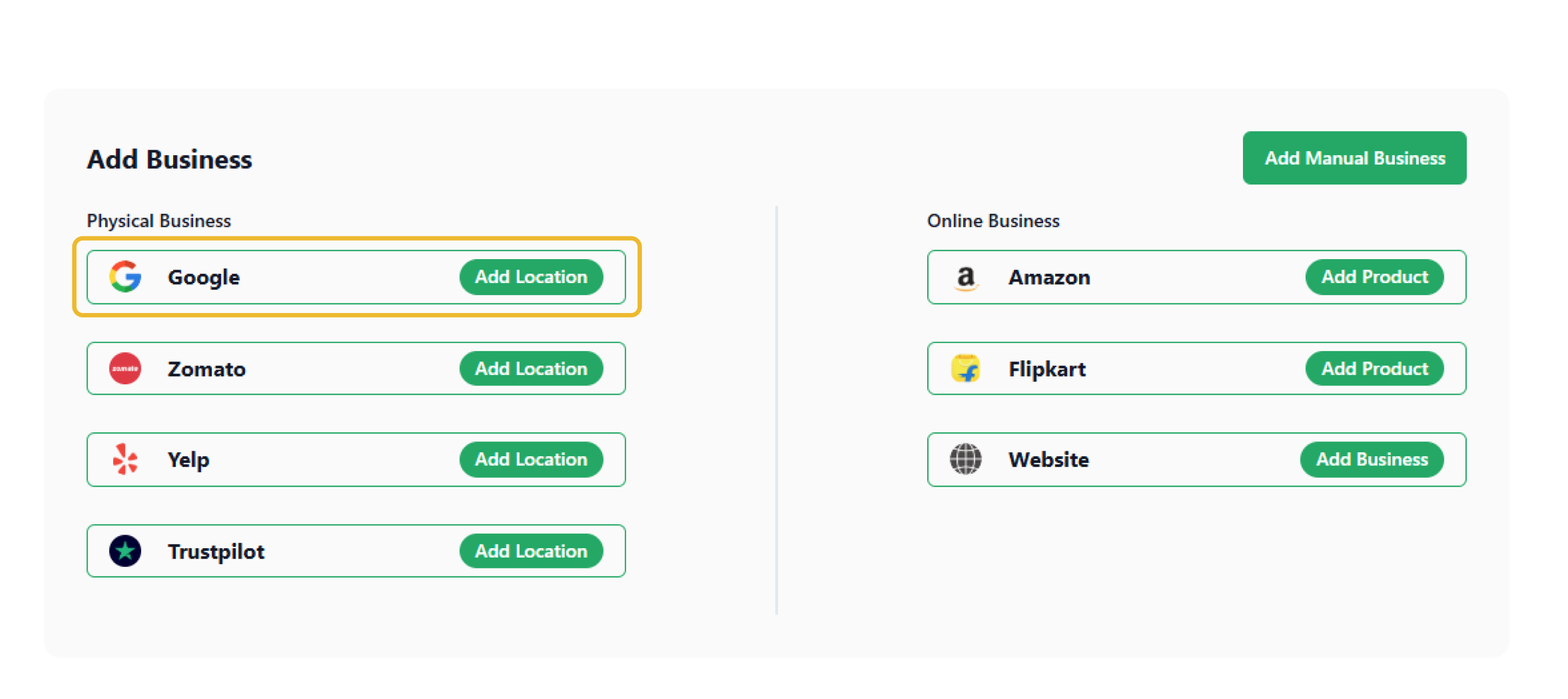- Select ‘Add Location’ next to the Google option to connect your profiles.