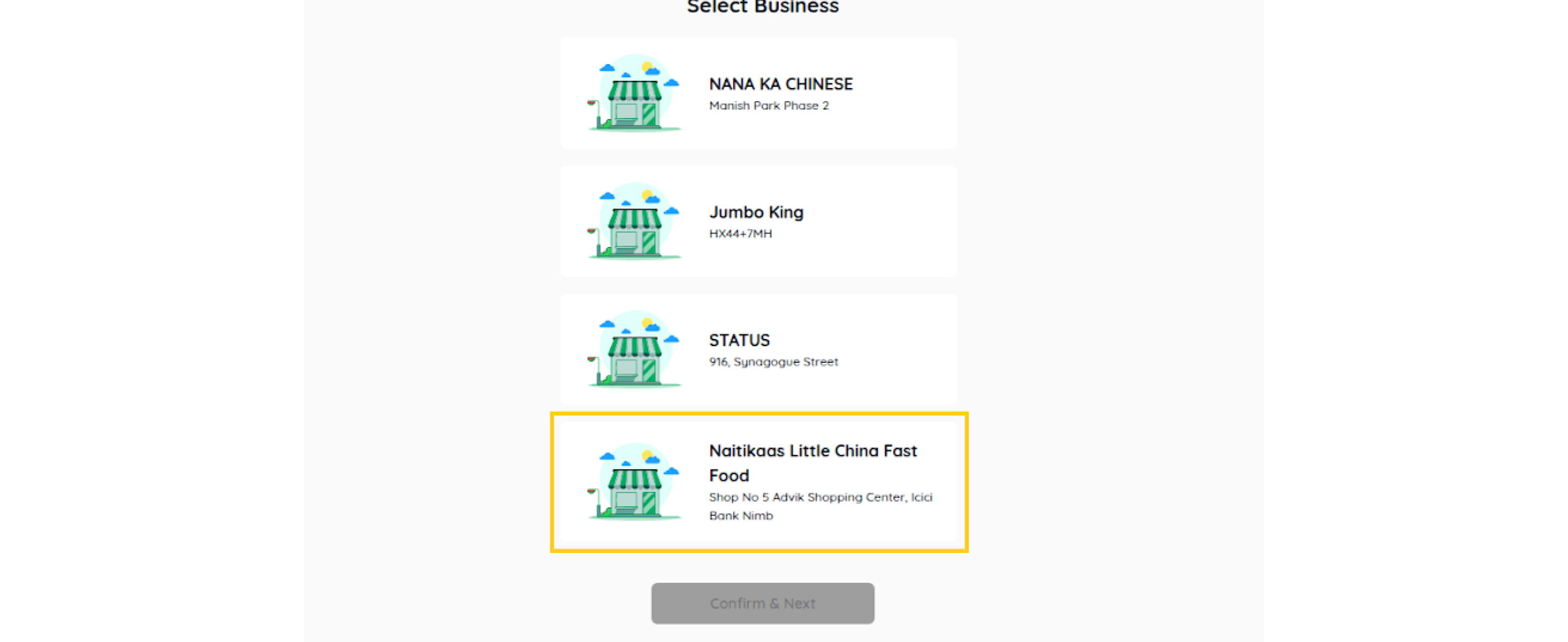 - Select the business you want to link with Quick Hub, then click ‘Confirm & Next’.